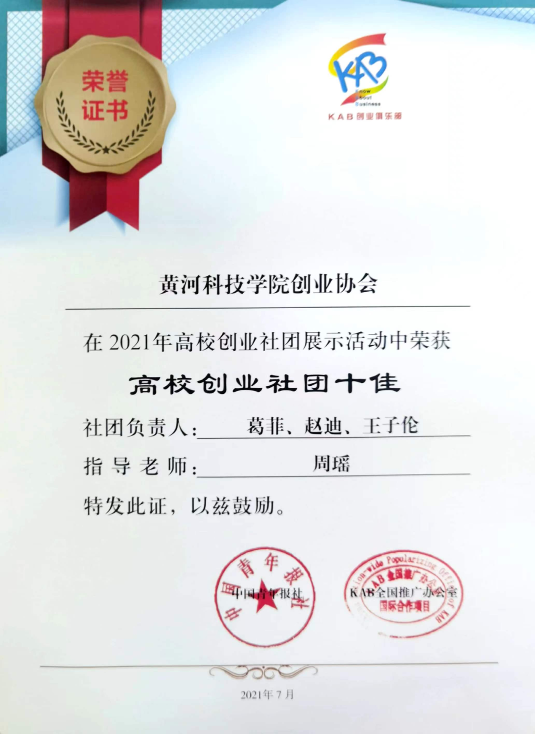 青年是整个社会力量中最积极,最有生气的力量,校团委坚持优化实践育人体系,坚持青年在哪里,我们就要去哪里,促进“两个课堂”有机融合,通过在社团活动、社会实践、创新创业、志愿服务等方面的新措施,助力学生成长成才,激发学生拼搏奋进。到目前,已经有500余支社会实践团队,分赴全国各地,开展了社会调查、文化支教、企业帮扶、环境保护等多种形式、多种内容的实践活动,真正做到了变“三下乡”为“常下乡”,使活动“长流水,不断线”。2021年,一个个荣誉见证了团委的育人实效,见证了黄科院青年学生的凝聚力、精气神:“寻访英雄故事 传承红色基因”青春寻访实践团获全国大中专学生志愿者“三下乡”社会实践活动优秀团队;在2021年全国大中专学生志愿者暑期“三下乡”社会实践“镜头中的三下乡”活动中获优秀报道团队;在2021年第七届寻找全国大学生百强暑期实践团队”活动中获“优秀实践团队”(全国仅三十个);获2021年河南省暑假社会实践活动优秀团队;在第十五届“挑战杯”大学生课外学术科技作品竞赛省赛中获二等奖2项,三等奖18项。