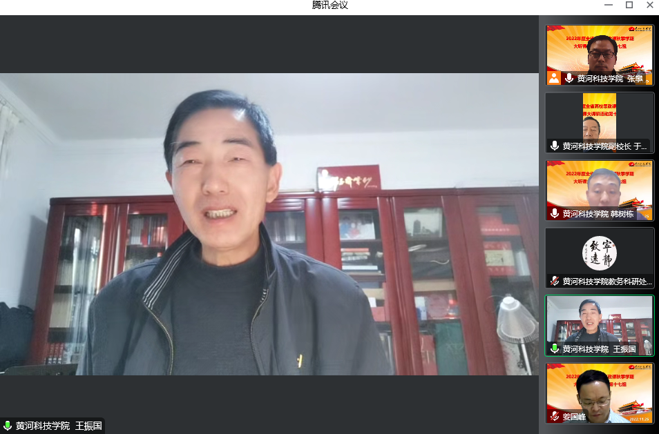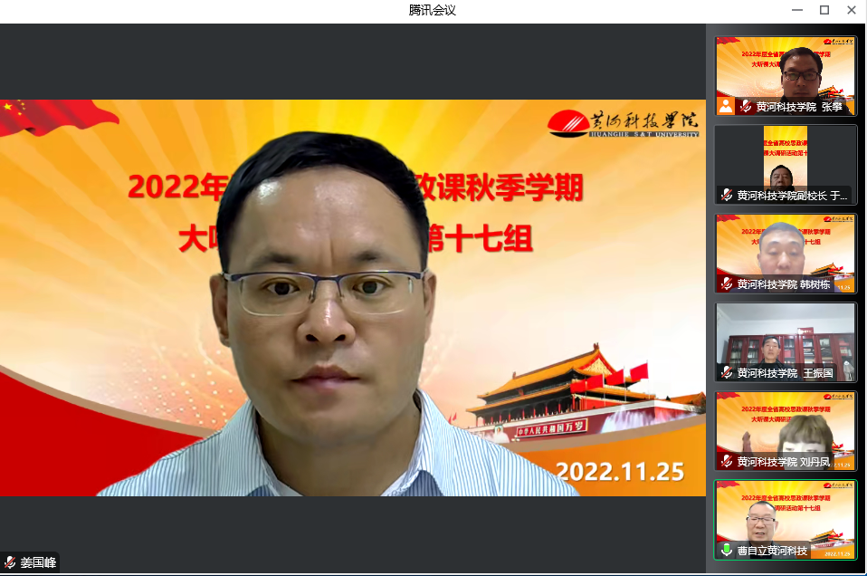 根据河南省委教育工委、河南省教育厅《关于开展2022年度全省高校思政课秋季学期“大听课”“大调研”活动的通知》安排,11月25日,由河南工程学院马克思主义学院院长姜国峰担任组长,河南警察学院马克思主义学院副院长王朝辉、河南工程学院马克思主义学院教授周书焕、河南财政金融学院马克思主义学院教授张珺倩为成员的第十七调研组采取线上会议形式召开永利官网思政课建设座谈会。副校长于向东出席会议并致辞,校党委委员、宣传部部长王军胜,教务科研处长李高申、马克思主义学院院长王振国以及马克思主义学院班子成员、思政课教师代表参加会议。会议由马克思主义学院党支部书记韩树栋主持。