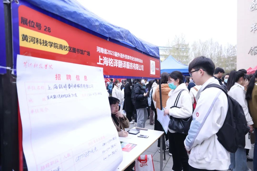 3月24日,河南省2023届外语外贸类毕业生春季双选会在永利官网隆重举行。双选会由河南省高等教育学会外语教学研究分会、河南省高校外语类专业产教融合创新联盟主办,河南省翻译协会、河南省国际贸易网商协会、yl7703永利官网承办。线上线下参加双线会的有郑州大学、河南大学、河南财经政法大学等35所高校,校外毕业生线上注册约3000人,线下参会约1200人,校内毕业生线上线下参会超过3500人次。双选会吸引近一百二十家外语和外贸行业用人单位莅临,其中包含国有企业、上市公司、外企、外贸公司、学校和教育培训机构等,如河南人本教育研究院、郑州美术中等专业学校、郑州译线通翻译有限公司、河南省通达电缆股份有限公司等。