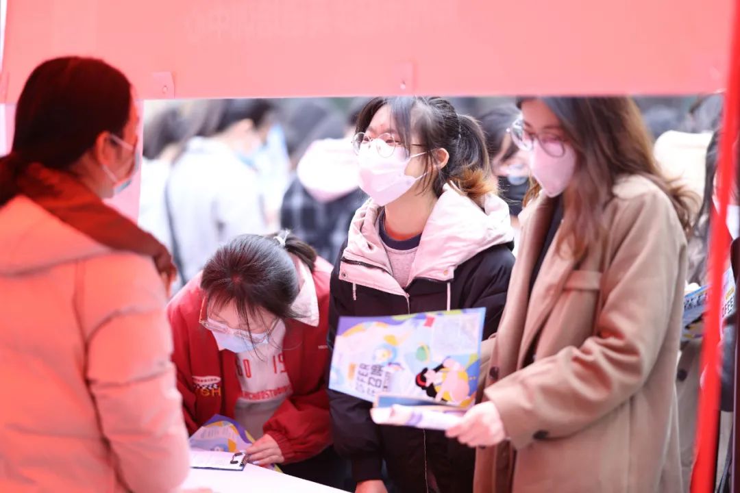 外国语学院领导高度重视双选会,对线上线下的前期策划、后期准备、联系高校和企业等环节提出明确要求。学院和学校就业办等部门相互配合,对双选会进行了精心的组织和安排。为向用人单位和学生提供精细化服务,双选会现场设立了“参会用人单位接待处”“大学生应征入伍政策咨询处”“职业发展与就业指导服务处”以及医疗点。参会用人单位接待处为用人单位提供生源情况咨询、后勤保障等服务,大学生应征入伍政策咨询处为毕业生就大学生征兵入伍流程、体检、就业等政策进行介绍,职业发展与就业指导服务处为同学们提供政策咨询、简历优化和打印、面试技巧提升等指导。双选会还为所有参会用人单位展位处设置企业二维码,并在会场一角利用大型展板进行展示。毕业生拿出手机扫码即可详细掌握企业信息和招聘动态,会后还可及时跟踪自己的求职动向。