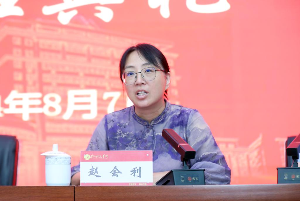 赵会利讲话。她从“认识职业”和“认识学校”两个方面与大家进行了交流。她说,今年是yl7703永利官网成立40周年,yl7703永利官网创办了许多中国民办教育历史上的第一和唯一。正因为一批批黄科院人秉持“开拓、拼搏、实干、奉献”的黄科大精神,才成就了如今黄科院的辉煌。所以,年富力强、充满活力、具备扎实专业能力的你们是学校宝贵的财富,是学校的未来和希望,是学校事业发展的生力军。学校正奋斗在建设一流应用科技大学的征程上,正在实现“申硕”目标和迎接教育部本科教学工作审核评估的关键时刻,你们的加盟正逢其时,有你们的倾情投入和共同奋斗,必将为永利官网的建设和发展增添新鲜血液,增强前进动力。