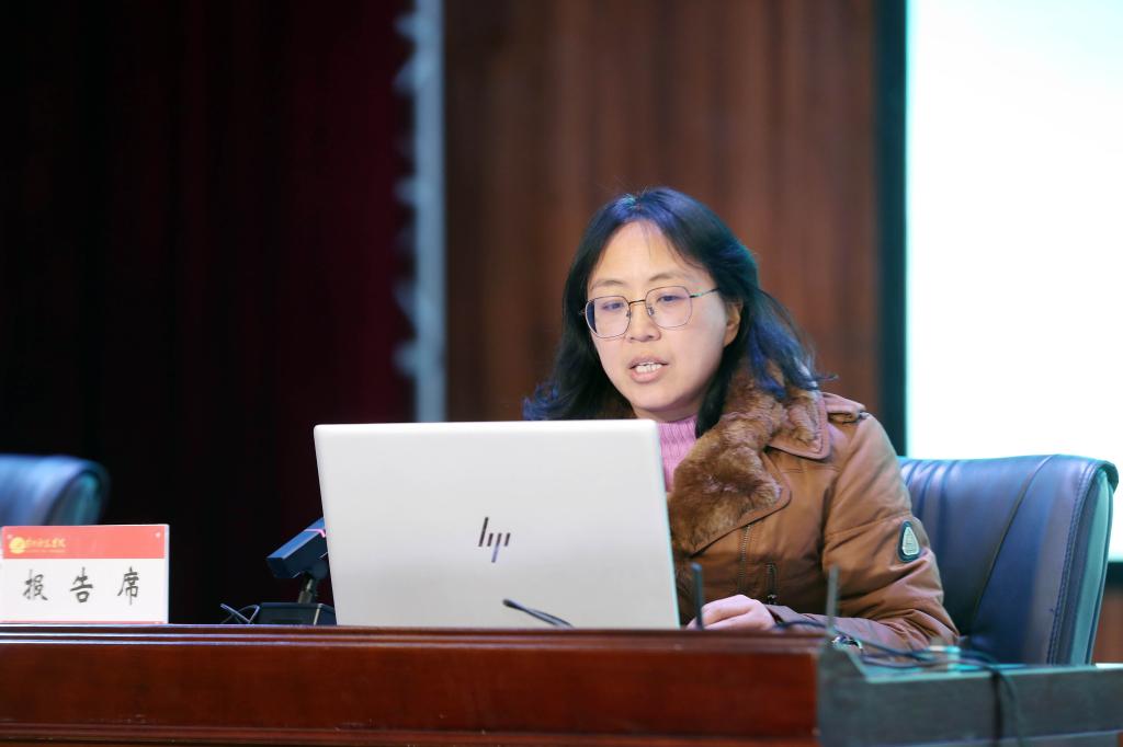 校党委副书记赵会利以《深入贯彻二十大精神 重塑黄科大精神》为题,介绍了组织文化的定义、功能和方法,以及组织文化所面临的挑战,并诠释了学校精神文化的形成。赵会利着重从总体目标、基本原则、重塑黄科大精神的主要任务、重塑黄科大精神的主要措施四个方面解读了如何重塑黄科大精神。她指出,为认真贯彻落实党的二十大精神和习近平总书记关于文化建设的重要讲话精神,为40周年校庆献礼,我们要重塑黄科大精神。主要任务是:传承和弘扬“三为”办学宗旨,着力涵养风清气正的良好生态;传承和弘扬“敢为天下先”的气魄,着力培育创新精神和创新意识;传承和弘扬黄科大“四大精神”,着力培育履岗尽责的责任意识;传承和弘扬“让学生从容面对未来”的育人目标,着力培育最负责任的奉献意识。重塑黄科大精神要从强化精神理念认同,扩大传播广度;强化正向宣传教育,丰富活动载体;强化“以人为本”,营造和谐氛围;强化组织保障,构建坚实后盾四个方面着手。